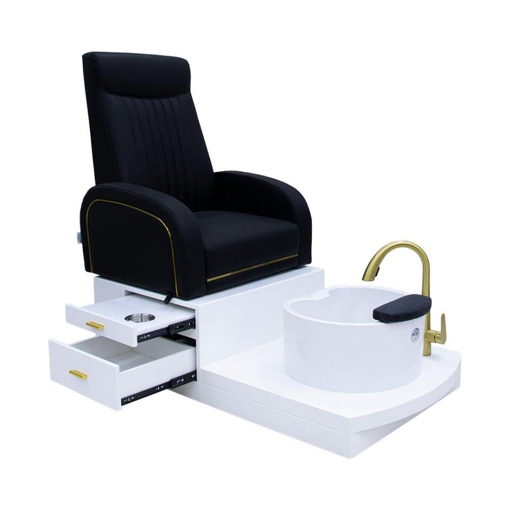 2. راحة ممتازة: مصنوع من مواد فاخرة، يضمن هذا الكرسي أقصى قدر من الراحة لعملائك أثناء جلسة العناية بالأقدام. توفر الوسادة الفخمة والتصميم المريح دعمًا ممتازًا لأسفل الظهر، مما يسمح للعملاء بالجلوس والاسترخاء.