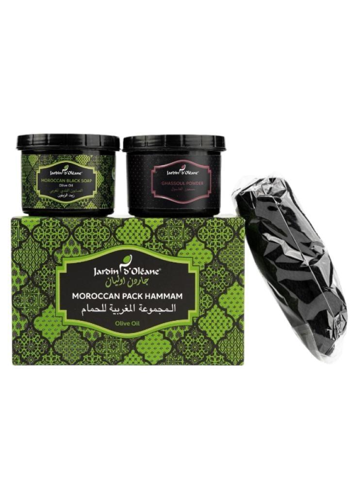 • مكونات المجموعة : الصابون المغربي بزيت الزيتون + بودرة غسول للجسم + الليفة المغربية